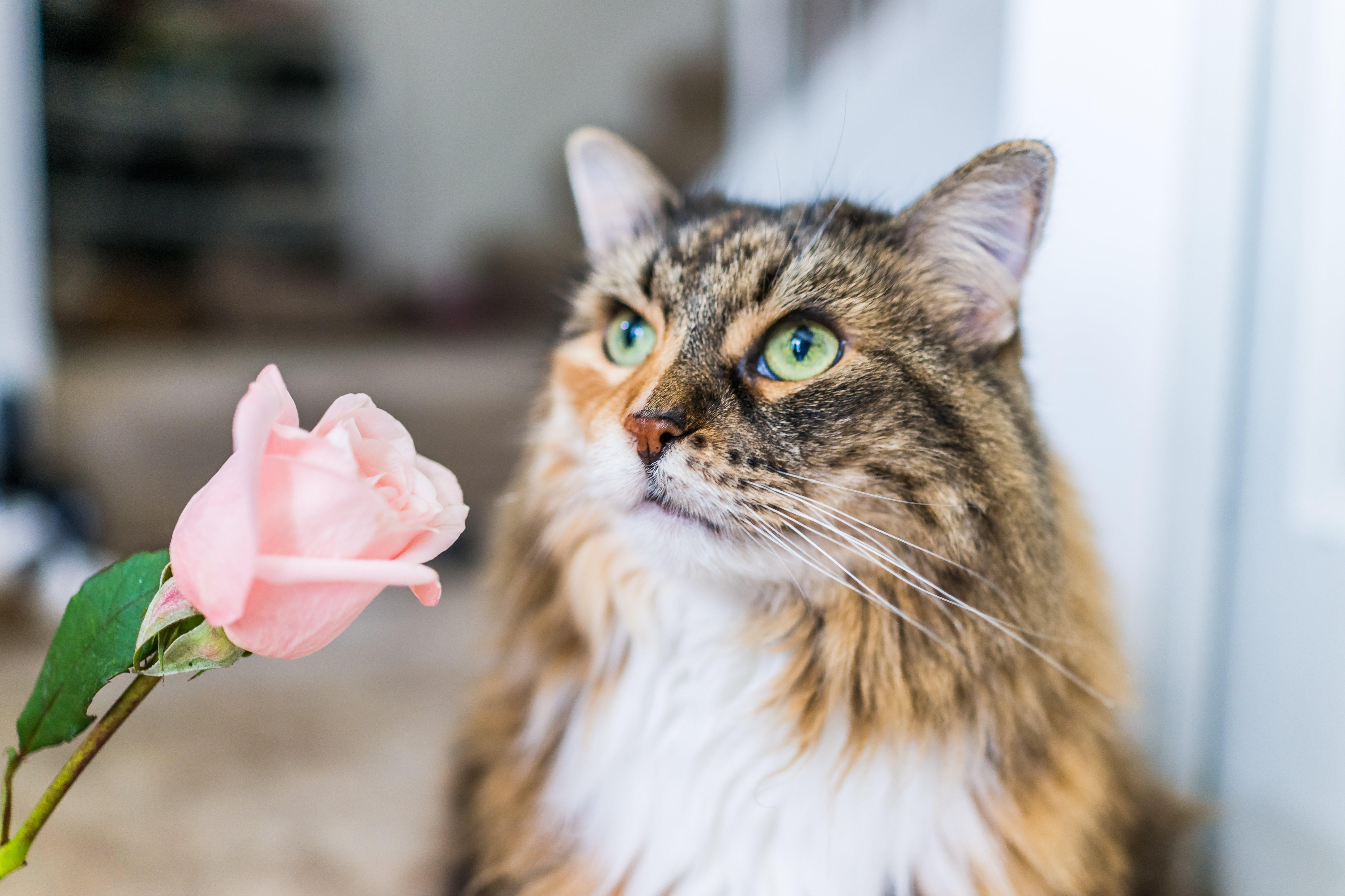 rose-pink-flower-cat